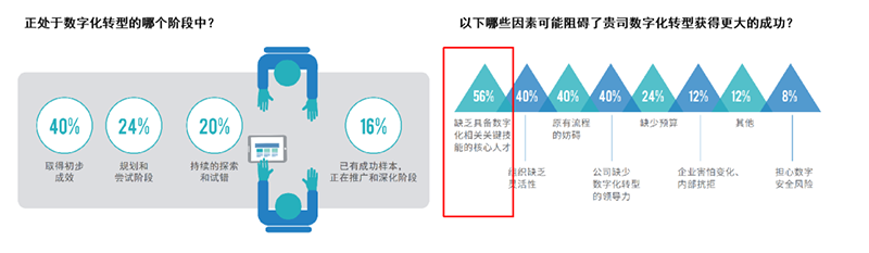 虽然数字化转型在企业中已经广泛实施一段时间,但能够取得成功样本、处于推广和深化阶段的企业仍占极少数。对企业来说,在严峻的经济环境下,决定数字化转型能否成功,最关键的因素是企业中人的能力与行动。