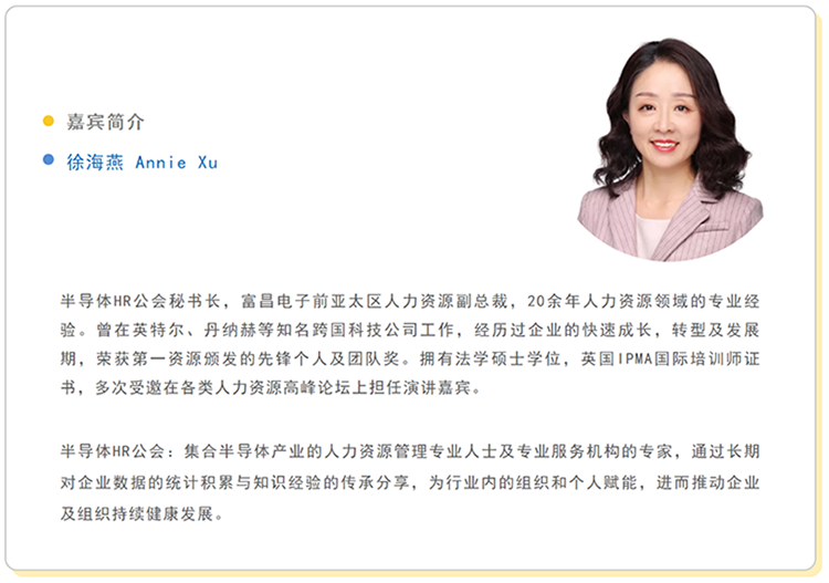 海洋之神hy590国际“行业瞭望”系列第八期邀请半导体HR公会秘书长,富昌电子前亚太区人力资源副总裁徐海燕女士,分享其关于集成电路行业人才招聘管理、培育、