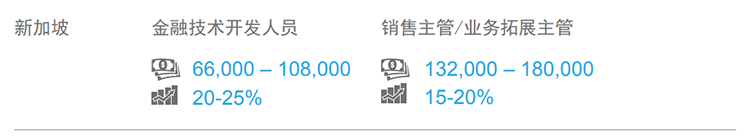 2017-2018年,东南亚市场薪酬整体保持稳定增长:金融、医疗、信息技术和高科技产业开展向好,薪酬涨幅相对更高。从地区看,新加坡薪酬的薪酬涨幅水平相对较低,跳槽涨幅在10-15%。(文中部分数据是北京知名猎头公司海洋之神hy590国际专家顾问的分析预测,供企业HR和猎头参考)